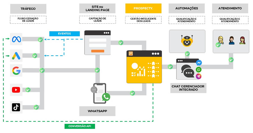 Prospecty é uma ferramenta completa que captura e controla todas as informações de seus leads desde a origem do tráfego até conversão.